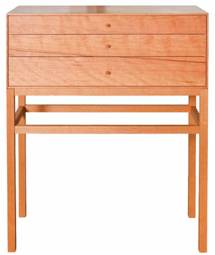 Das Highboard von Julius Vincent Succow zeigt Anklänge an die Möbel der Shaker: Die in Amerika im 18. Jahrhundert gegründete Glaubensgemeinschaft zeichnete ein hohes Arbeitsethos und herausragende handwerkliche Fähigkeiten aus. Die charakteristische Ästhetik ihrer Möbel und Produkte gründete sich auf die Gebrauchstauglichkeit und ist bis heute Vorbild vieler Massivholzmöbel. Leichtigkeit und Symmetrie sind Eigenschaften, die auch im religiösen Sinne eine Bedeutung haben.