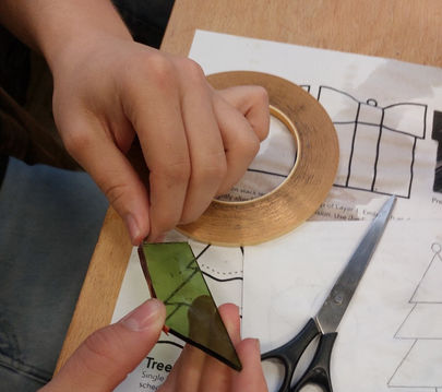Zunächst wurde die sogenannte Tiffany-Technik in dieser Woche im theoretischen Unterricht (LF 6 Kunstverglasungen herstellen und instandsetzen) gelernt, um Ursprung, Merkmale und Arbeitsablauf zu verdeutlichen.